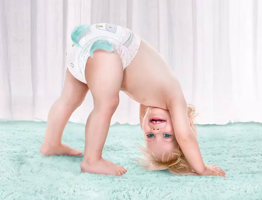A Pampers legkényelmesebben illeszkedő bugyipelenkája örökmozgó kisbabák számára.
